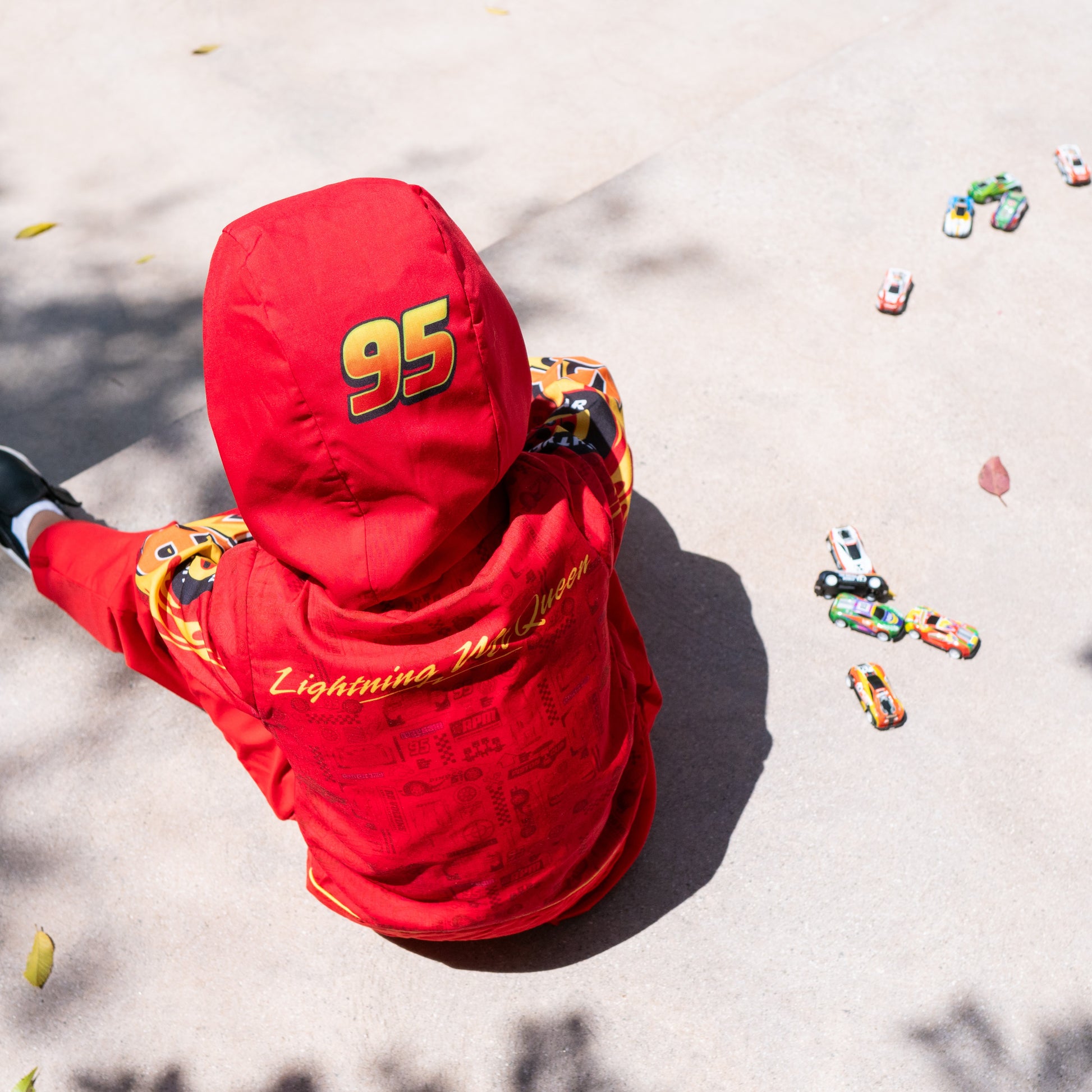 Disney Cars Lightning McQueen Washable Dress Up. Made with premium quality and soft, comfortable material, this set includes a jacket, pants, and matching hood. The zip-up jacket features a Rusteze logo, McQueen's signature number on the sleeves and name on the back, making it perfect for little racers. Don't worry about getting it dirty, it's washable for endless playtime fun! Keepsake quality. Imported.