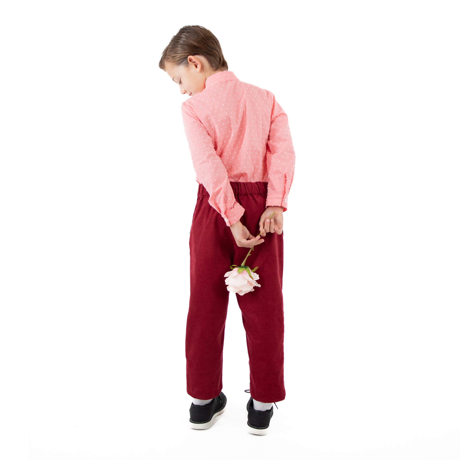 A dashing duo for your little trendsetter! Elevate your child's wardrobe with our stylish Jr Star Child Heartbreaker Pink Shirt with Bow Tie. The pink Swiss dot shirt has a button down closure, and the premade charming black and white polka dot bow tie is removable. Perfect for weddings, festive celebrations, or special occasions. Keepsake quality. Made in the USA.